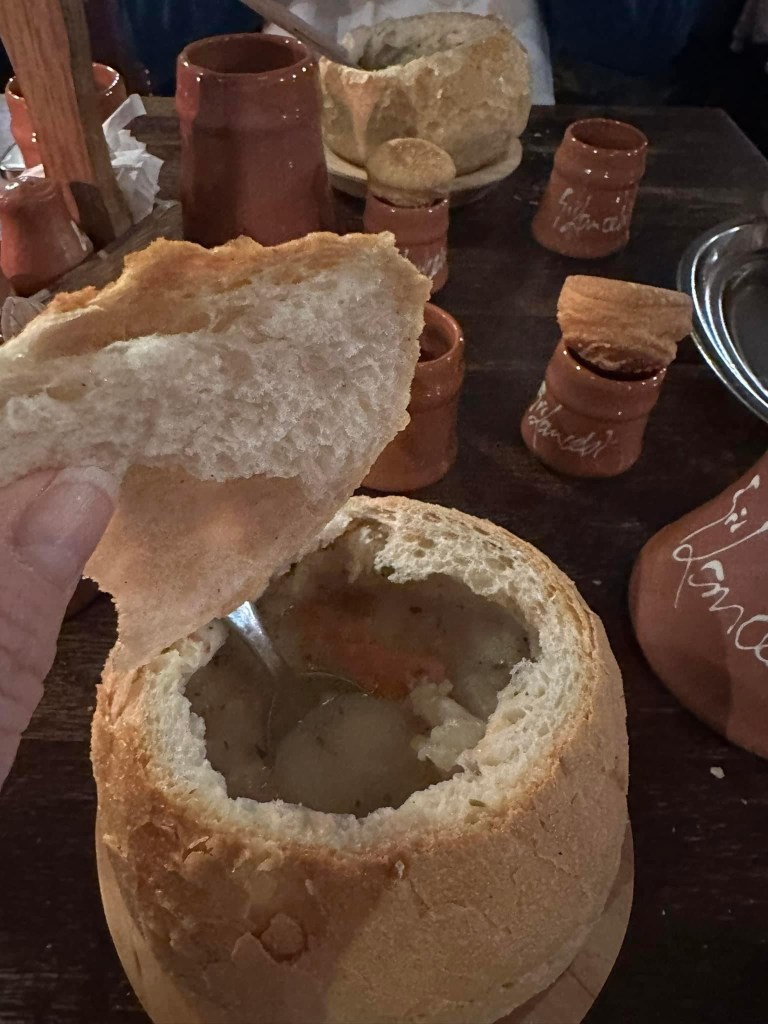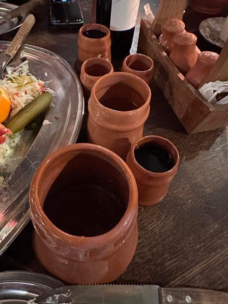 I middelalderen så fråtset man i mat når det var fest. På sir Lancelot får du også gedigne porsjoner med mat som smaker helt utrolig godt. Drikke blir servert i keramikk krus som de gjorde i middelalderen.