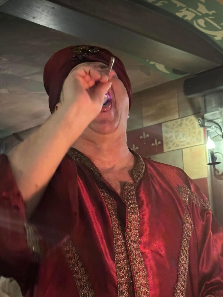 Hva annet hadde de på middelalders fest ? Jo selvsagt underholdning. Så det kunne jo selvsagt sir Lancelot stille opp med.