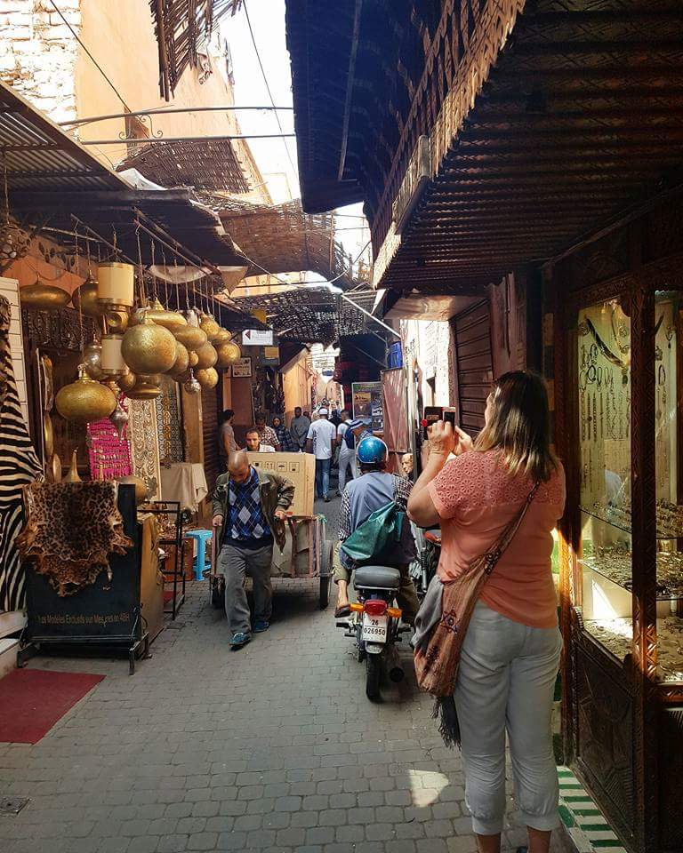 Dagene og kveldene i Marrakesh gamleby er både livlig og til dels masete. Masse lukter alt fra krydder, skinn og mat i skjønn forening.?Gater snirkler seg som en labyrint. Her kan man fort gå seg bort.